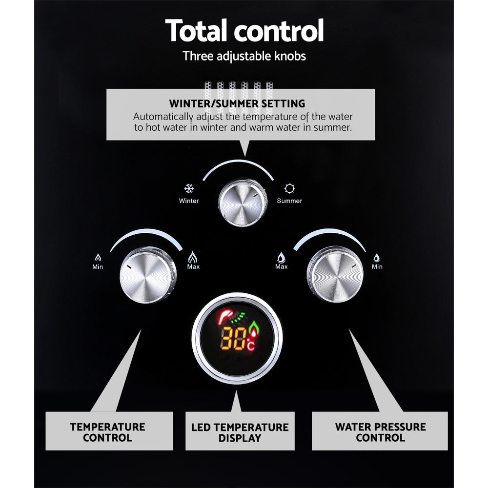 Easy to install, the water heater can heat up to 480L of water per hour at your preferred temperature setting conveniently shown on the LED display. No worries about getting accidentally scalded too as the heater has a built-in processor that sets the maximum water temperature at 50°C. Together with a host of other great safety features, the variable flow shower head is also designed to automatically ignite or turn off the burner by a simple on/off trigger.