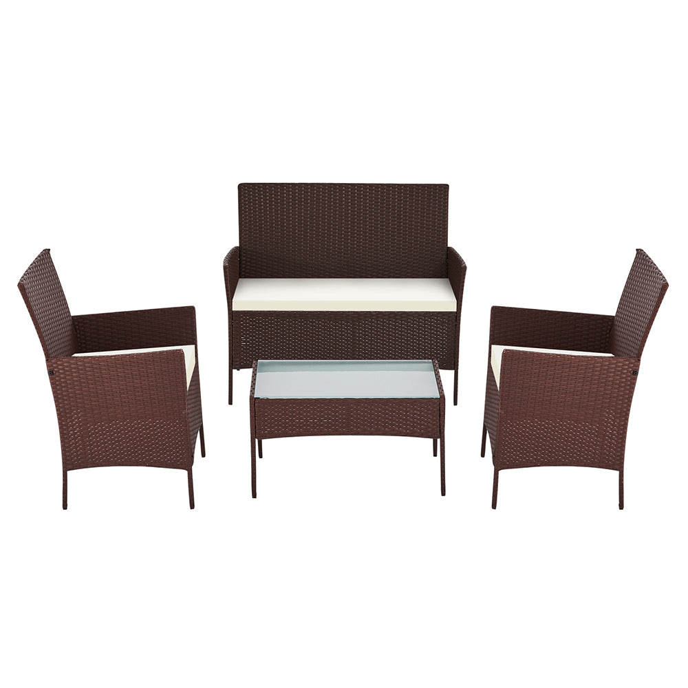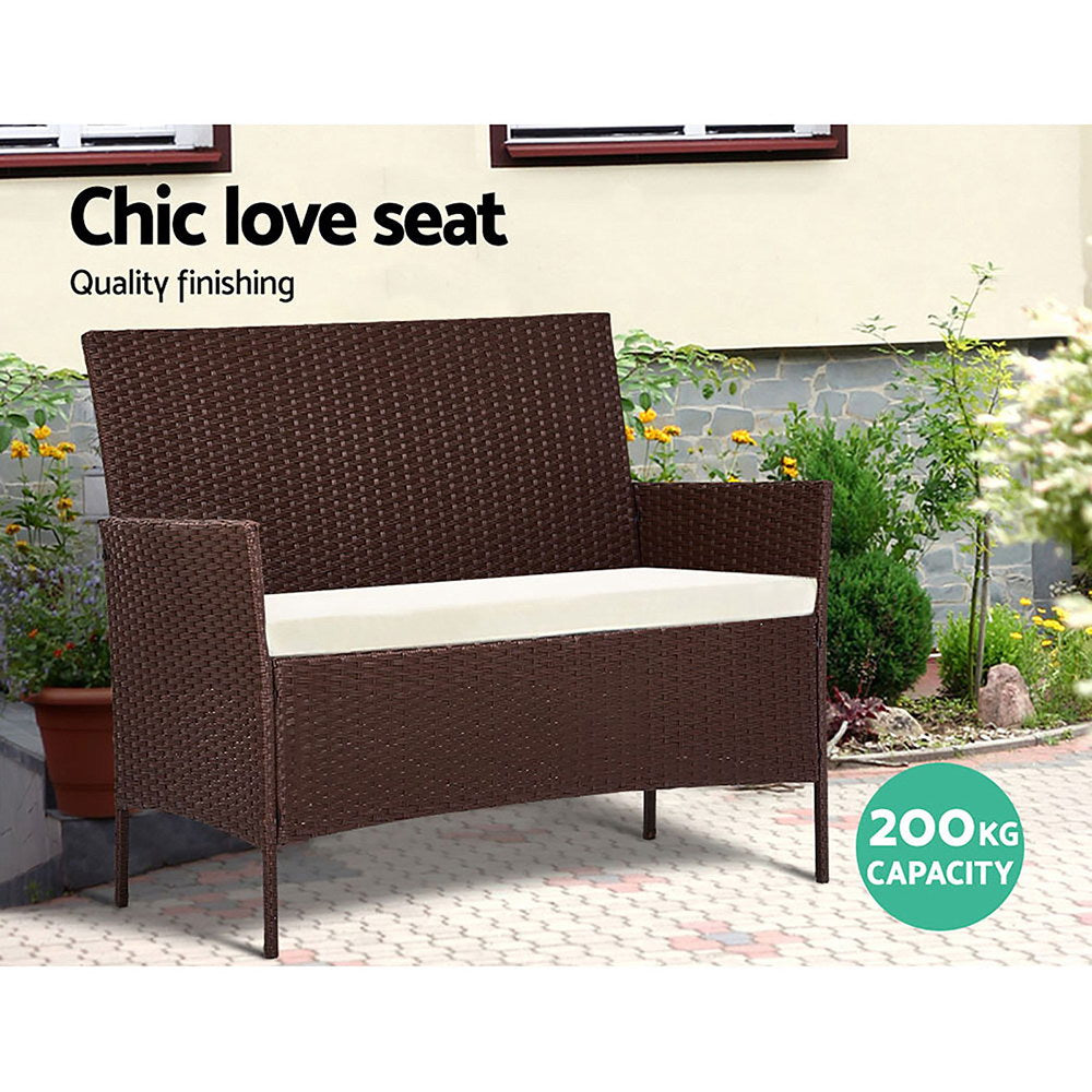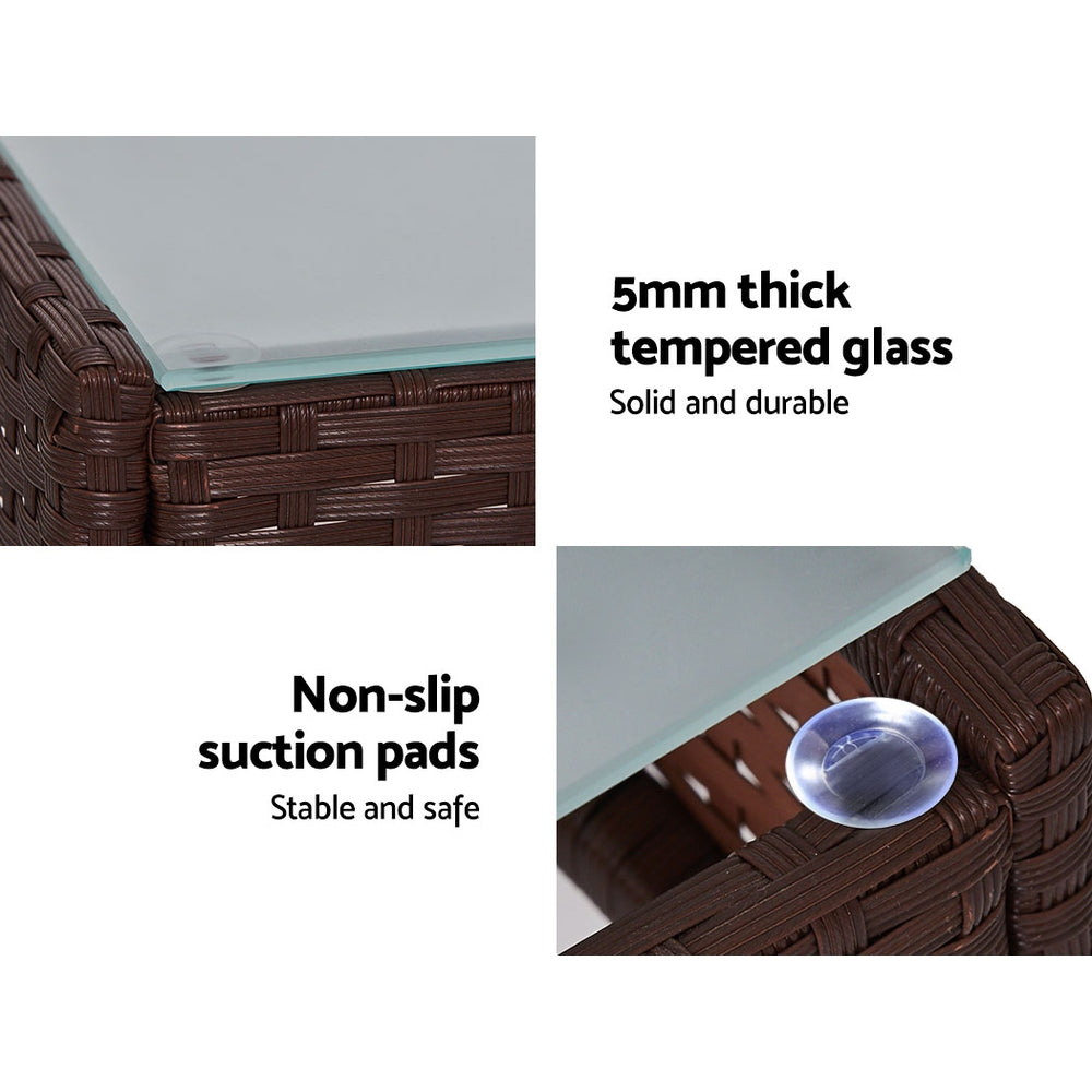 Meticulously crafted, our Gardeon 4-piece Rattan Outdoor Set comprises two armchairs, a two-seater and a matching table for a beautiful integrated look. Its presence will definitely add panache and style to your deck, patio or even living room. Made of eco-friendly PE wicker and a sturdy steel frame, this set is designed to last through all weather and the test of time. The 5mm thick tempered glass top with non-slip suction pads for the table also ensures strong and safe use with total peace of mind. Not least, the cushion covers are removable and washable to maintain their pristine appearance. There is even a bonus storage cover included for you to protect the set from sun and rain when not in use, so that you can keep enjoying your garden parties for many years to come.