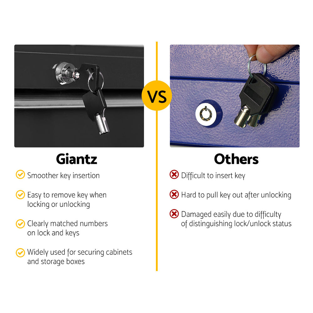 This robust, multi-drawer Giantz Tool Trolley is an essential for any workshop. Crafted from durable steel, it features smooth ball-bearing slides for easy access and a secure lock system for safety. Its spacious design includes varying drawer sizes to accommodate tools of all shapes, complete with non-slip liners. The chest is also mounted on omni-directional castors with locakble front wheels, ensuring a smooth maneuverability and stable positioning. Sleek and functional, it's perfect for organizing and protecting your valuable tools.