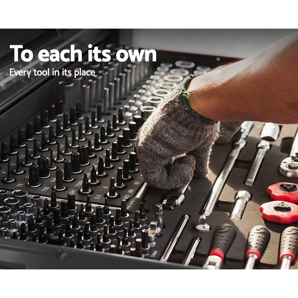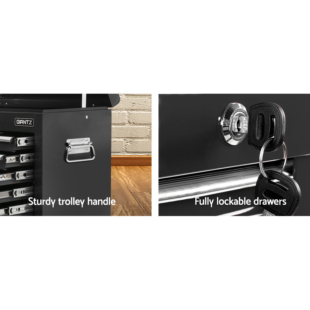 This robust, multi-drawer Giantz Tool Chest is an essential for any workshop. Crafted from durable steel, it features smooth ball-bearing slides for easy access and a secure lock system for safety. Its spacious design includes varying drawer sizes to accommodate tools of all shapes, complete with non-slip liners. Sleek and functional, it's perfect for organizing and protecting your valuable tools.